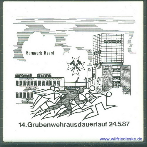 Zu meiner aktiven Zeit als Mitglied der Grubenwehr musste ich körperlich immer fit sein. Da gehörte es einmal im Jahr zum guten Ton am Grubenwehr-Ausdauerlauf teilzunehmen. Der Lauf über 10 km wurde jedes mal von einer anderen Grubenwehr ausgetragen. Die Strecke musste in einer Zeit unter 70 Minuten bewältigt werden. Zur Erinnerung bekamen die Läufer jedes Mal eine Kachel.