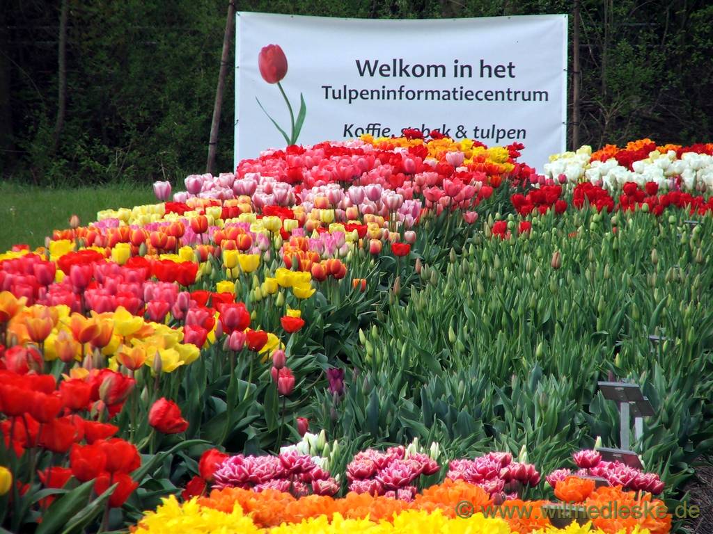 Angeregt durch die schön blühenden Tulpen unserem Vorgarten fasste ich im Frühjahr den Entschluss die Tulpenfelder in Holland zu besuchen. Nach Recherchen im Internet entschied ich mich für die Tulpenroute. Dies ist eine ausgeschilderte Strecke, die mit dem Auto an den Tulpenfeldern (und anderen Sehenswürdigkeiten vorbei) durch den Noordoostpolder führt.