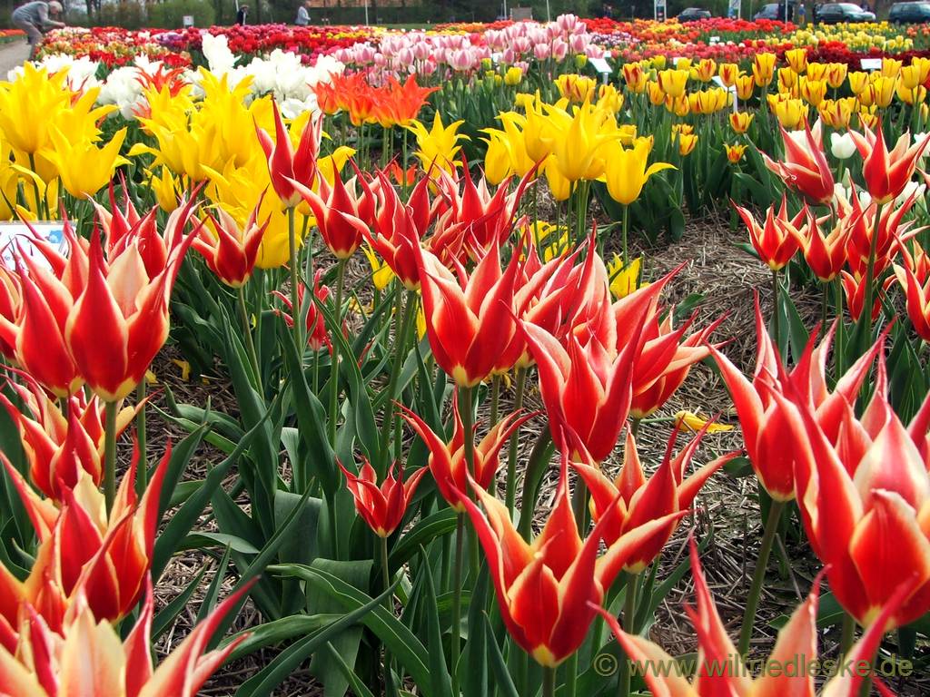Ein besonderes Highlight ist das Tulpeninformationscenter in der Nähe von Creil. Hier sind auf einem Feld ca. 2000 verschiedene Tulpenarten zu bestaunen. Neben den verschiednen Farben sieht man große und kleine, einfarbige und mehrfarbige, glatte und zackige, früh- und spät blühende, mehr und weniger duftende Tulpen. Ich konnte mir nicht alle Namen merken.