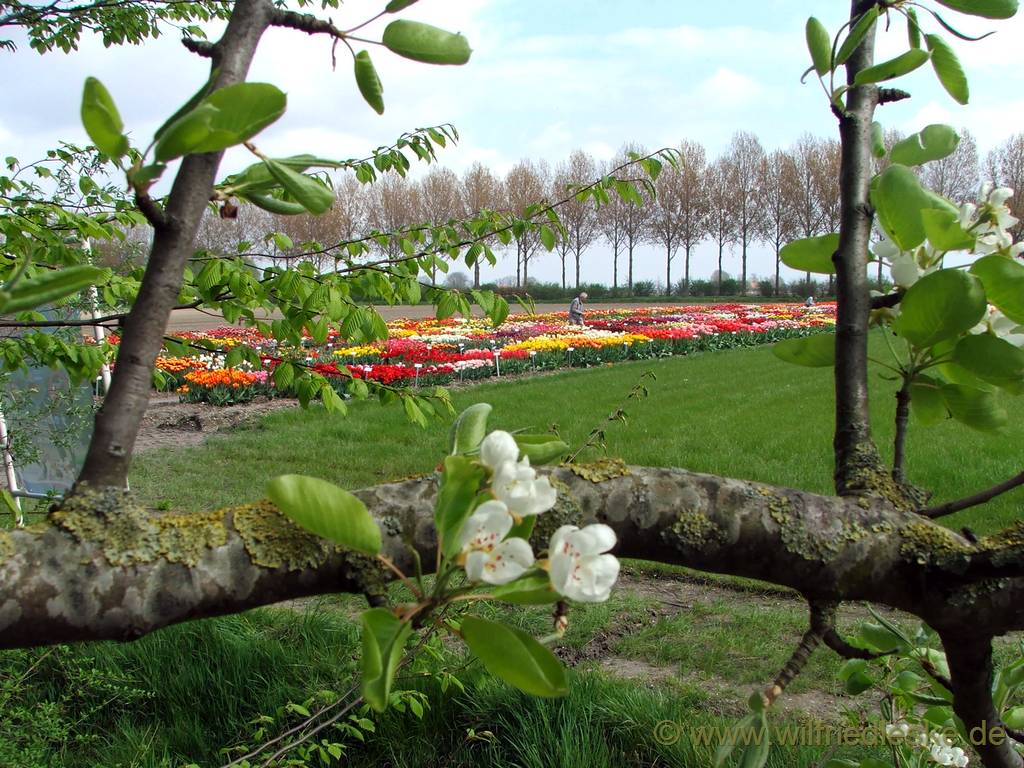 Aber zurück zur Tulpenroute. Die Rundfahrt verläuft entgegen dem Uhrzeigersinn und führt einmal um den gesamten Polder. Neben Tulpen sieht man aber auch noch die anderen Formen der Landwirtschaft mit dem Schwerpunkt Obstplantagen rund um Kraggenburg oder Viehzucht (u.a. Alpackas) bei Rutten.