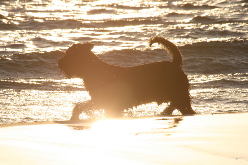 Da der Platz direkt an einem wunderbaren Sandstrand liegt, war das natürlich eine Belohnung für unseren Hund. Er hatte wieder Spaß ohne Ende und das schönste war, gegen Mitternacht durfte er das noch einmal wiederholen. Wir sahen wieder eine strahlende Sonne über dem Meer.