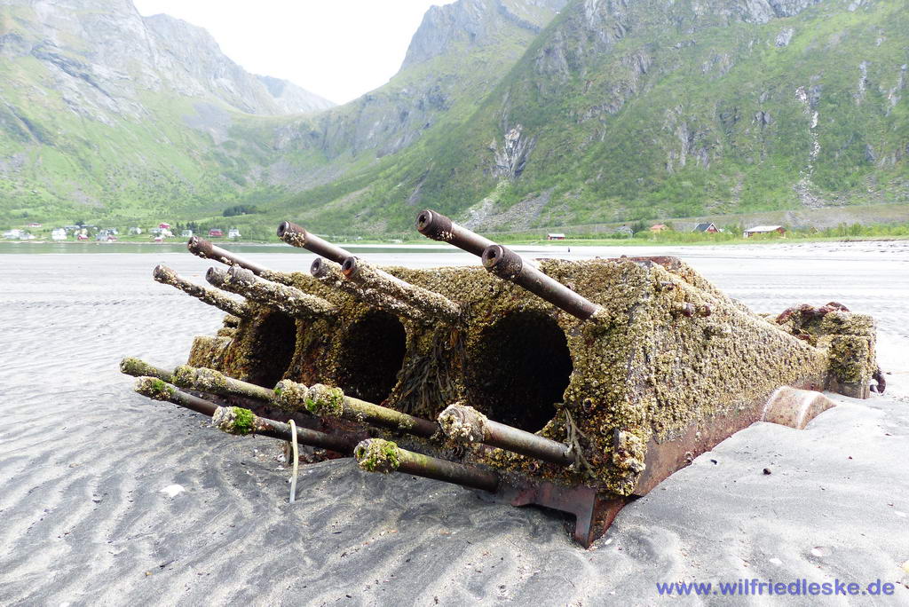 Aber zurück zu unserer Reise. Erstes Ziel auf den Vesterålen war Stokmarknes. In diesem idyllischen Dorf gründete Richard With vor mehr als 120 Jahren die erste Hurtigruten Reederei. Hier befindet sich auch das Hurtigruten-Haus mit dem Hurtigruten Museum. Bei der Besichtigung begibt man sich auf eine Zeitreise entlang der Küste. Man sieht, welche Änderungen in den vergangenen 120 Jahren an Bord der Schiffe vorgenommen worden sind. Aber auch Berichte über Schiffsunglücke sind Teil der Ausstellung. Neben dem Museum liegt die alte „MS Finnmarken“. Das 1956 in Dienst gestellte Hurtigruten-Schiff wurde nach seiner Ausmusterung 1993 auf dem Museumsgelände aufgedockt und kann besichtigt werden kann. Wegen der fortschreitenden Korrosion wurde das Museumsschiff kurzfristig mit einem Leichtbau-Dach aus Trapezblechen abgedeckt. Mittelfristig sind größere Aufwendungen für den Erhalt des Schiffes notwendig.
