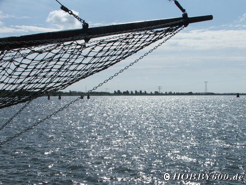 Aus dem Forum hatten wir wieder den Hinweis auf Kamminke am Stettiner Haff bekommen. Hier kann man auf einem Parkplatz unmittelbar am Wasser stehen. Wir fanden sogar noch einen Stellplatz in der ersten Reihe und konnten unmittelbar auf das Wasser schauen. Die Hunderunde entwickelte sich zwangsläufig zu einer Wasserrunde. Immer wieder Stöckchen suchen und ins Wasser werfen. Giovanni hatte seinen Spaß.