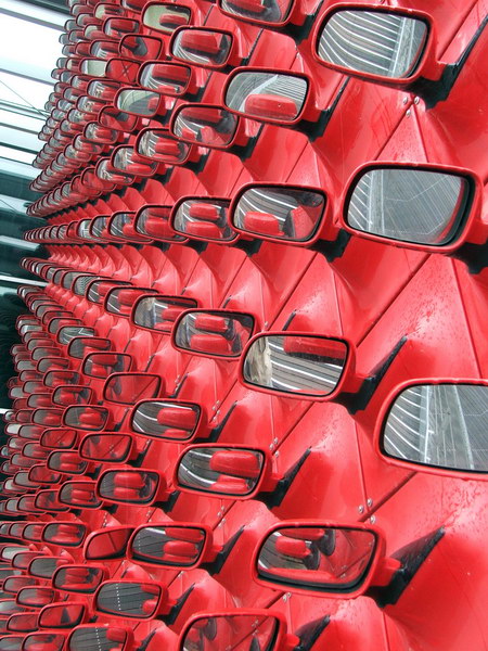 Wir erfuhren auch etwas über den Konzern und die verschiedenen Werke in aller Welt. So wurde unser Polo in Pamplona/Spanien gebaut und dann mit dem Schiff nach Emden transportiert. Von dort kam er mit dem Zug, gemeinsam mit dem Scirocco aus Portugal, dem Fox aus Brasilien, dem New Beatle aus Mexiko und dem Passat aus Emden nach Wolfburg. Hier wurden die Fahrzeuge gereinigt und die Übergabeinspektion durchgeführt. Dann kamen sie über eine überdachte Brücke in einen der beiden Glastürme. Dort stehen die Wagen maximal drei Tage. Dann werden sie ins Kundencenter gefahren und an den Kunden übergeben.
