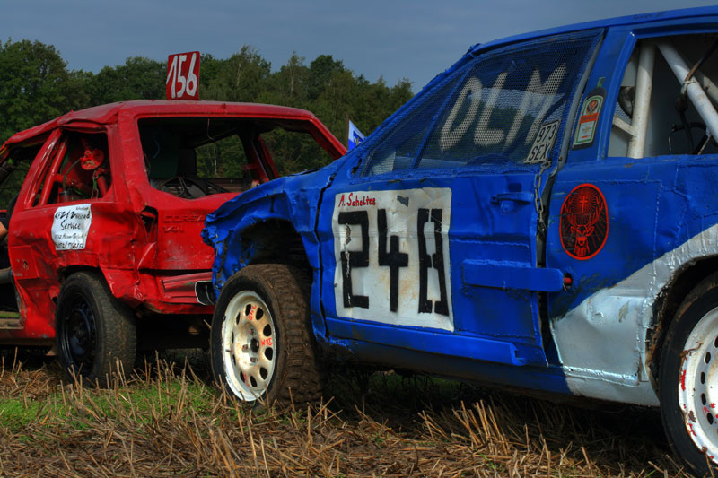 Am vergangenen Wochenende war Stock-Car-Rennen in Destel. Auf einem Acker fuhren die Fahrzeuge um Punkte zur Meisterschaft. Natürlich wollte ich die Action beim Rennen im Bild einfangen. Darüber hinaus habe ich aber auch mal etwas ausprobiert: HDR- Bilder vom Autorennen. Normalerweise geht das nicht. Jedenfalls nicht beim Rennen.