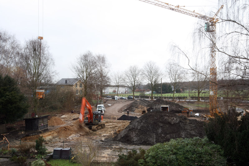 Aber ich bin ja nicht alleine mit meinen Baustellen. Hinter unserem Garten wird jetzt ein Aldi-Markt gebaut. Beim Fällen der vielen Bäume tat mir die Seele schon etwas weh. Über 30 Jahre habe ich sie wachsen sehen und dann war in zwei Tagen alles erledigt. Jetzt wächst dort ein Discountermarkt...