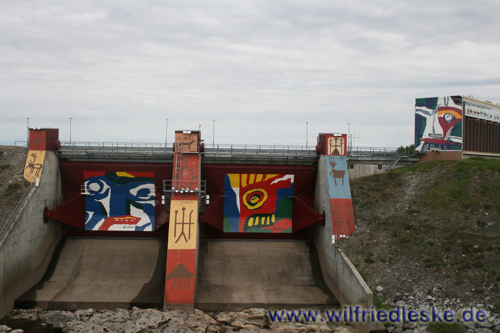 Kunst am Akkads-Kraftwerk bei Jokkmokk an der Rv45
