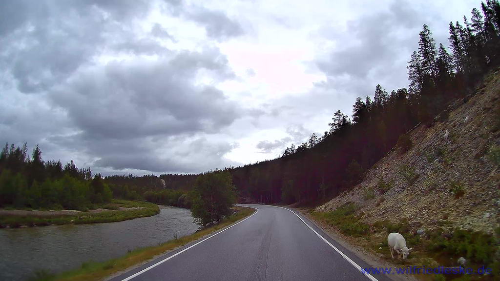 Das nächste Ziel war die Landschaftsroute Rondane. Man fährt immer mit Blick auf die 2000er des Rondanegebirges durch das Atnedalen. Natürlich haben wir auch die Aussichtsplattform Sohlbergplassen mit ihrer markanten, sich schlängelnden Konstruktion am See Atnsjøen besucht. Leider hatte die Bewölkung zwischenzeitlich zugenommen. Da auch der Parkplatz an der Plattform nicht besonders einladend war, fuhren wir weiter. Es begann etwas zu regnen. Zusätzlich trafen wir auf die ersten freilaufenden Schafe unmittelbar neben der Straße.