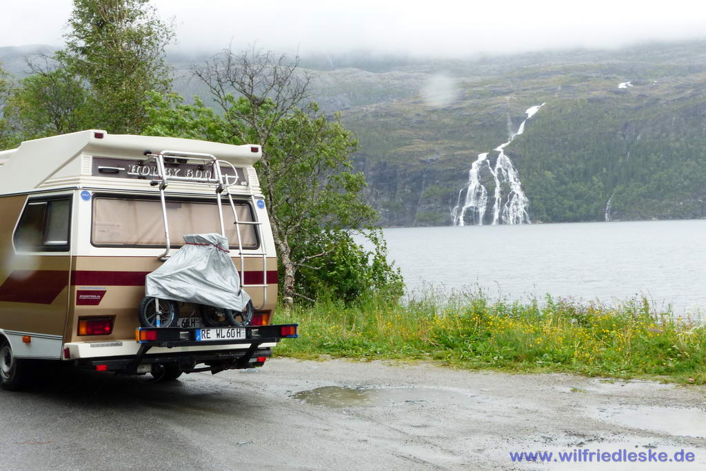 Wir folgten der Landschaftsroute und passierten den Tungeneset Rastplatz. Er sah aber eher nach einem Campingplatz aus. So voll war es hier. Da waren wir doch froh, den Rastplatz in Steinfjord gefunden zu haben; auch wenn er kein WC hatte.