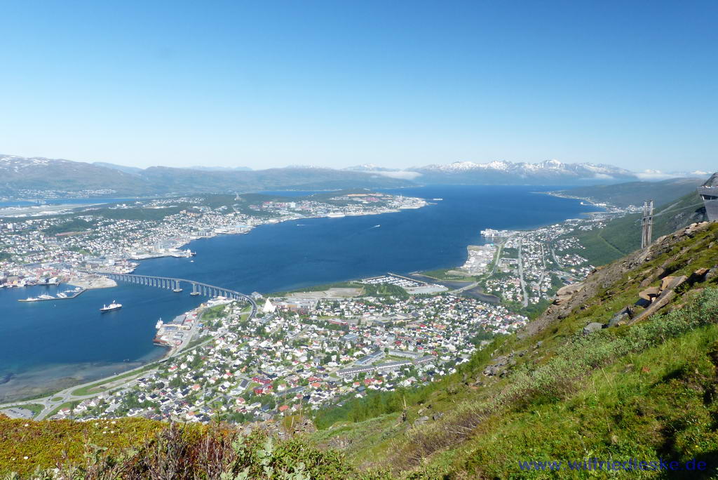 Am nächsten Morgen fuhren wir über eine Hochebene auf die andere Seite der Insel. Dort sahen wir schon von weitem die riesige Brücke zur Insel Tromsøya, unserem nächsten Ziel.
