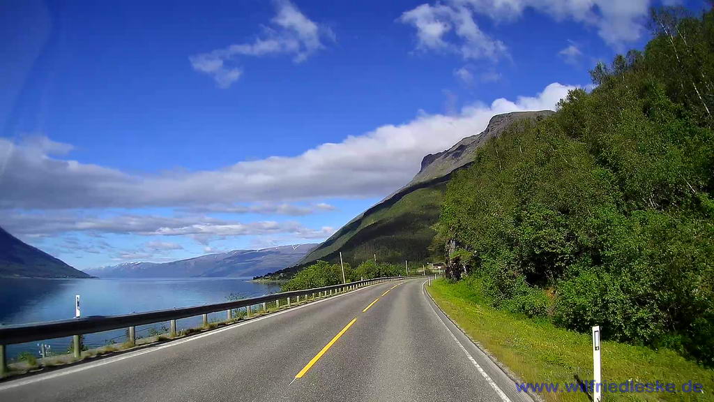 Sie verläuft von Gryllefjord nach Botnhamn und hat eine Länge von 102 km. Wir passierten zahlreiche, zum Teil sehr interessante Brücken und Tunnel und folgten weitgehend der Küstenlinie.