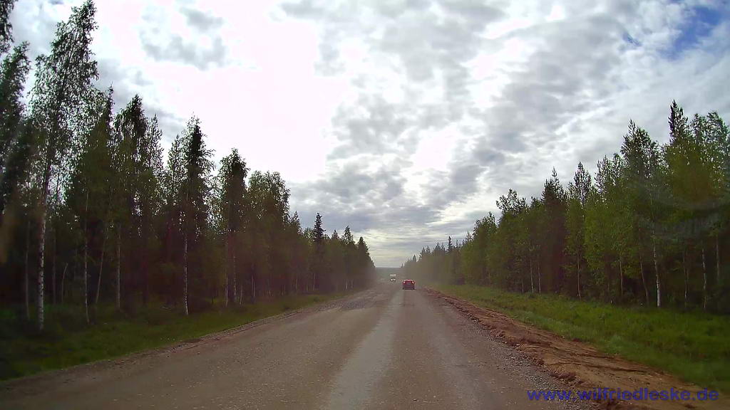Die E8, die hier in Finnland übrigens die 21 ist, folgt weitgehend den Flüssen Könkämäeno, Muonioälven und Torneälven, die hier die Grenze zwischen Schweden und Finnland bilden. Leider gab es in Finnland nicht die schönen mit V/E wie in Norwegen oder Schweden. Sehenswürdigkeiten befanden sich auch meist 30 bis 50 km von der Straße entfernt. Das war uns für einen Abstecher dann doch zu viel.