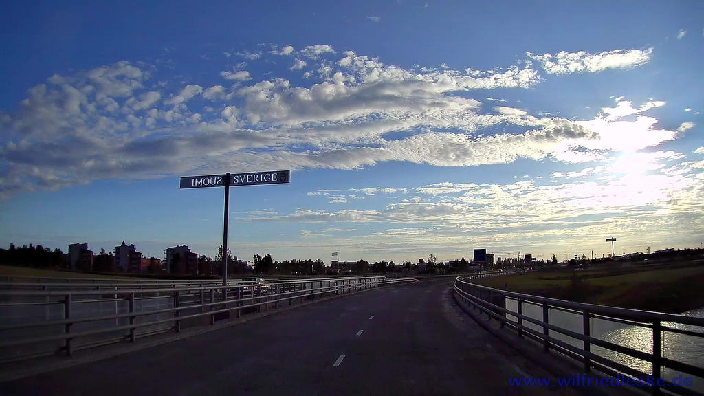 In Tornio steuerten wir einen Parkplatz am Ufer des Torneälven an und genossen den Blick auf den Fluss und die Brücken. Und eine Brücke war es auch, die die Grenze zwischen den beiden EU-Mitgliedsländern bildete. Wie hatten die E8 verlassen und befanden uns in Schweden.