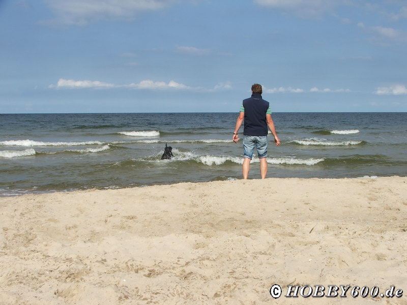 Am nächsten Tag, es war Sonntag, wechselten wir den Stellplatz. Da wir etwas Wäsche waschen mussten, suchten wir uns einen Campingplatz in Trassenheide. Für 29€/Nacht durften wir hier stehen; Dusche und Waschmaschine natürlich nicht inklusive. Dafür durften wir mit Giovanni auch wieder an den Hundestrand (und