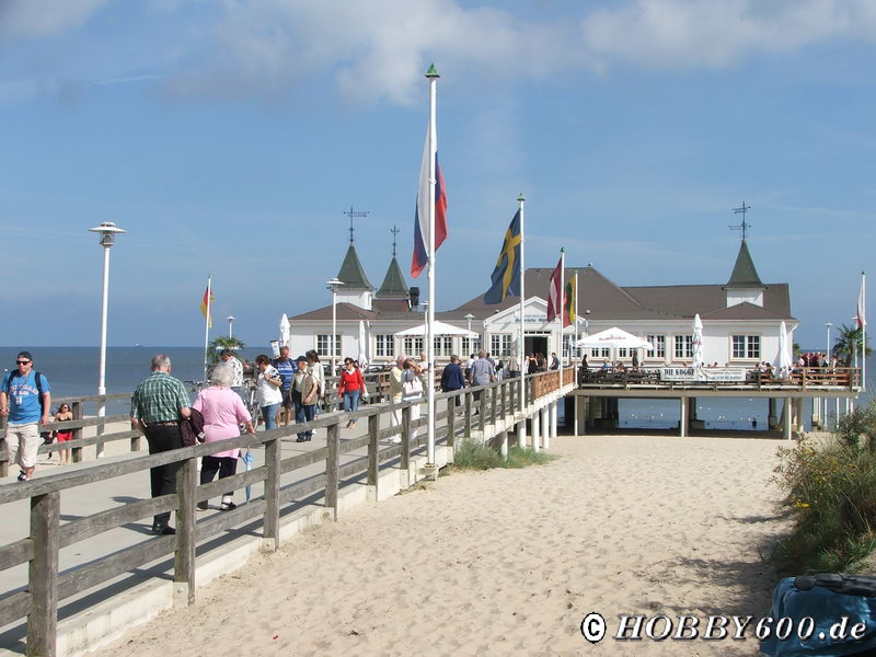 Als Nichtraucher und ohne polnisches Geld in der Tasche konnten wir beruhigt an den Polenmärkten vorbeifahren und uns unseren Teil denken. Ahlbeck haben wir auch nicht wieder erkannt. Die Seebrücke ist natürlich auch verlängert. Die Strandpromenade ist eine Autobahn für Radfahrer und wir fragten uns, wie voll es wohl erst zur Hauptsaison sei. Bei einem leckeren Eis beobachteten wir die Gäste im Ahlbecker Hof, um dann am Strand entlang zum Hafen von Swinemünde zu fahren. Ab der Grenze konnte man aber schon einen Unterschied erkennen. Man merkt, dass die Polen von uns keinen Aufbau Ost bekommen – abgesehen von den Errungenschaften der EU.